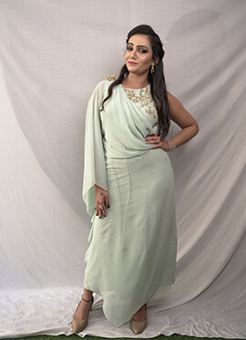 Rushed Bodice with Cowl Highlighted with Hand Embroidery